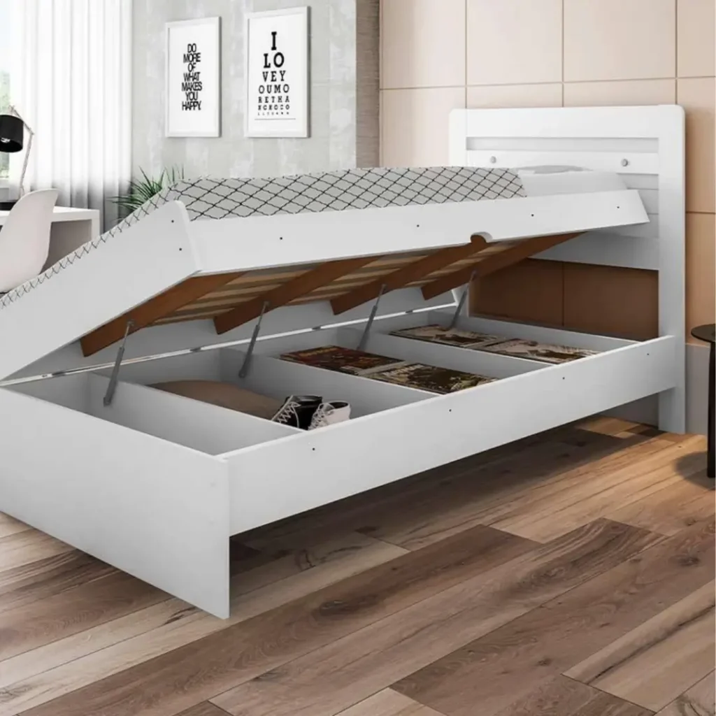 Cama Baú Emma – Solteiro (88x188cm) – 1 ano de garantia – Praticidade e Estilo em um Só Móvel