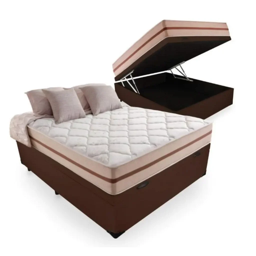 Inclui base box, baú e colchão — mais praticidade na compra, sem precisar adquirir peças separadas.