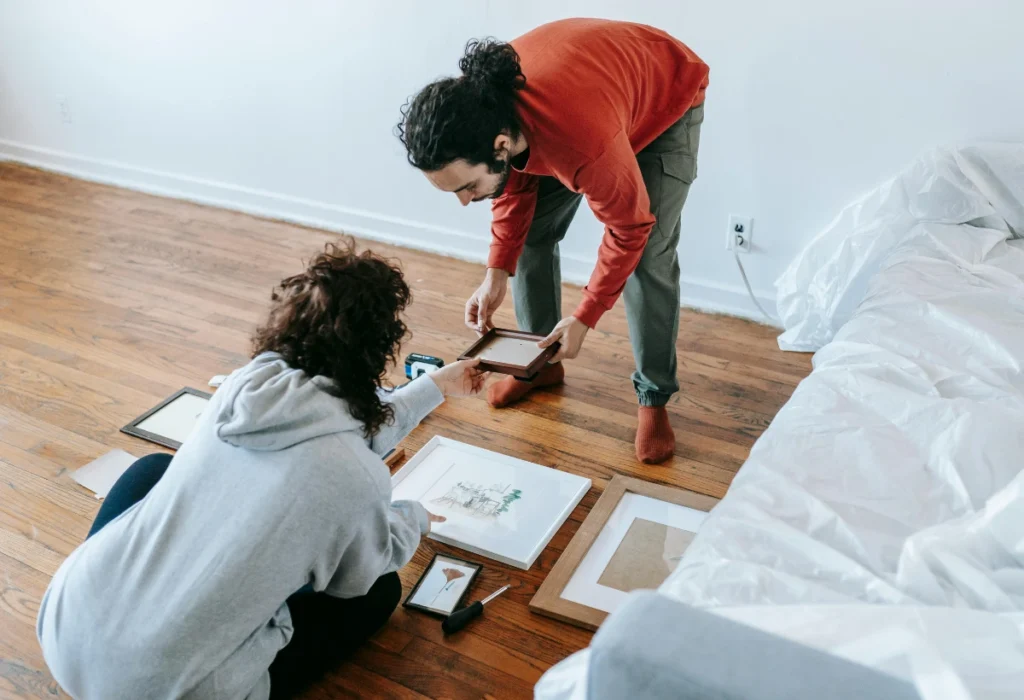 Criar uma galeria com quadros ou molduras é uma maneira simples de dar vida às paredes. Você pode usar fotos do casal, ilustrações gratuitas baixadas da internet ou até frases que representem a história de vocês. Não é preciso investir em molduras caras — versões simples em MDF, feitas com fita adesiva decorada ou até porta-retratos antigos podem cumprir bem o papel. O resultado é uma parede cheia de afeto, estilo e significado.