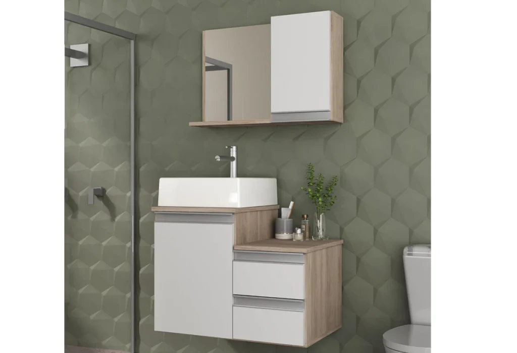 Avalie o que você costuma guardar no banheiro: produtos de higiene pessoal, toalhas, itens de limpeza? A quantidade e o tipo de compartimentos do gabinete devem atender à sua rotina. Modelos com gavetas são ideais para pequenos objetos, enquanto os com prateleiras ou nichos maiores podem acomodar itens volumosos. O segredo está em combinar praticidade com organização.