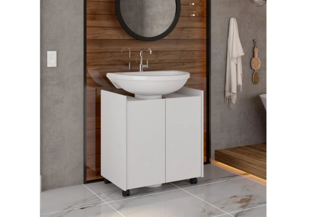 O banheiro exige limpeza frequente, por isso é fundamental escolher um gabinete com superfícies lisas e materiais resistentes à umidade. Evite modelos com muitos recortes, cantos difíceis de alcançar ou revestimentos que mancham com facilidade. Quanto mais prático for para limpar, mais tempo você economiza no dia a dia e maior será a durabilidade do móvel.