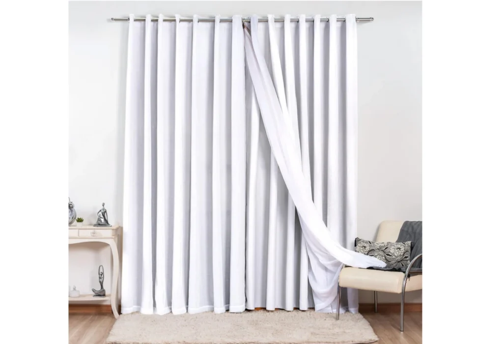 Muitos casais optam por sobrepor o blackout a uma cortina de tecido leve, o que cria um visual sofisticado e prático. Durante o dia, a cortina translúcida pode ser usada para deixar o quarto iluminado de forma suave, enquanto à noite o blackout entra em ação para garantir escuridão total.