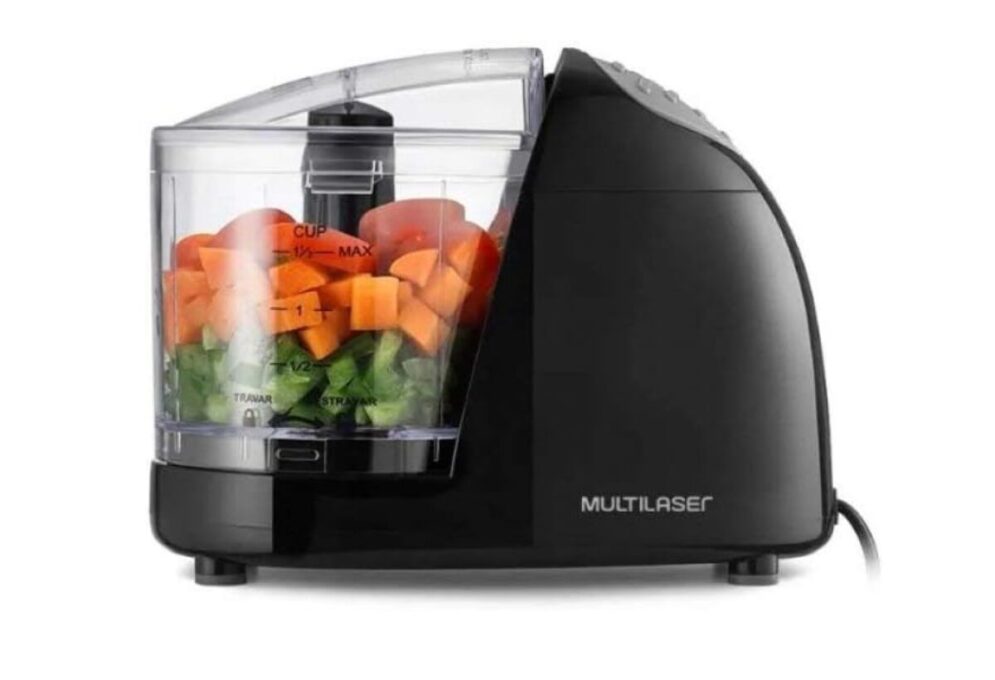 O Mini Processador Multilaser CE077 é uma opção acessível e prática para quem busca algo funcional. Com 100W de potência, ele realiza bem tarefas simples, como cortar temperos, triturar queijos ou preparar pequenas porções de ingredientes.